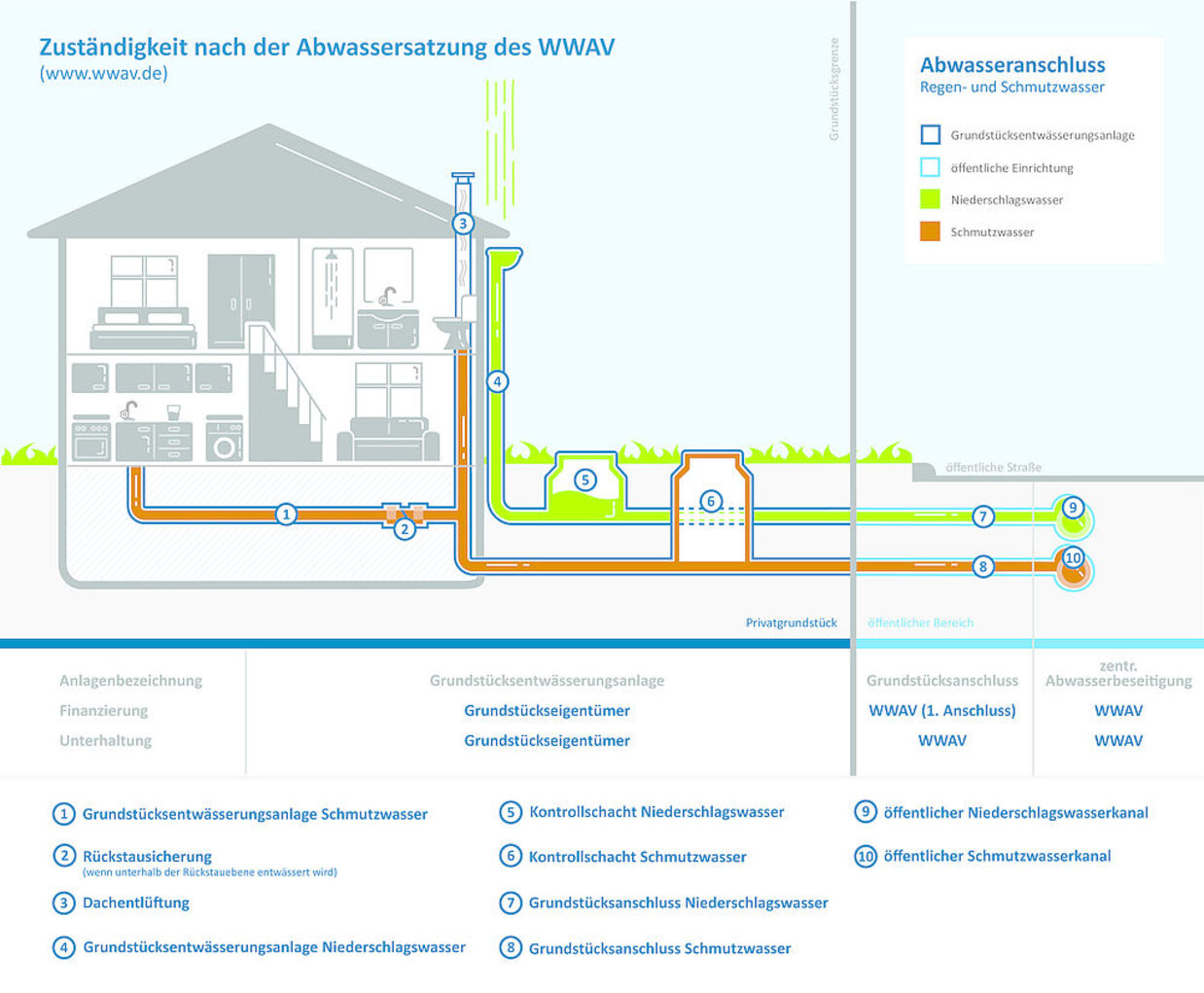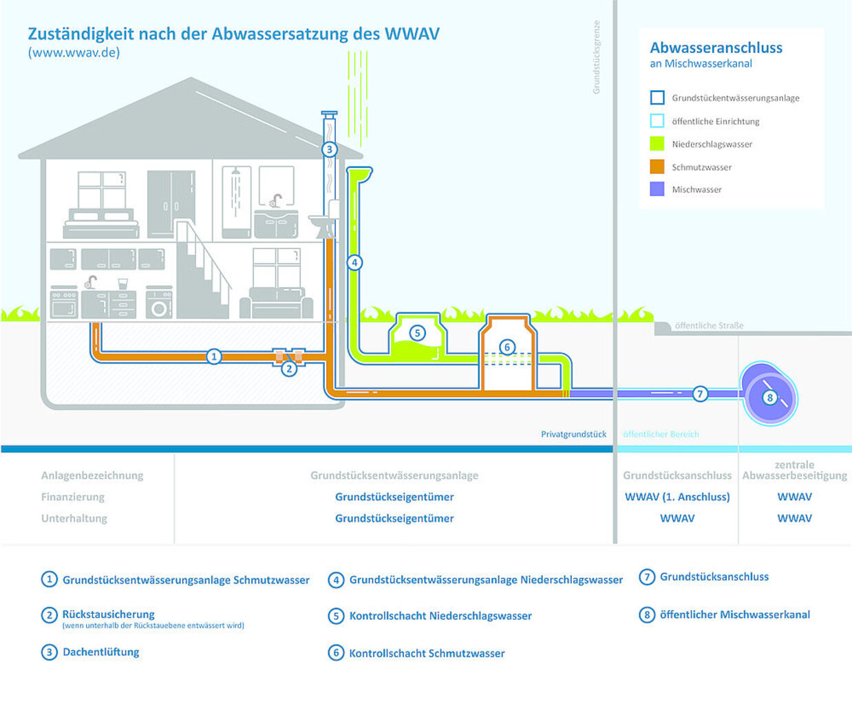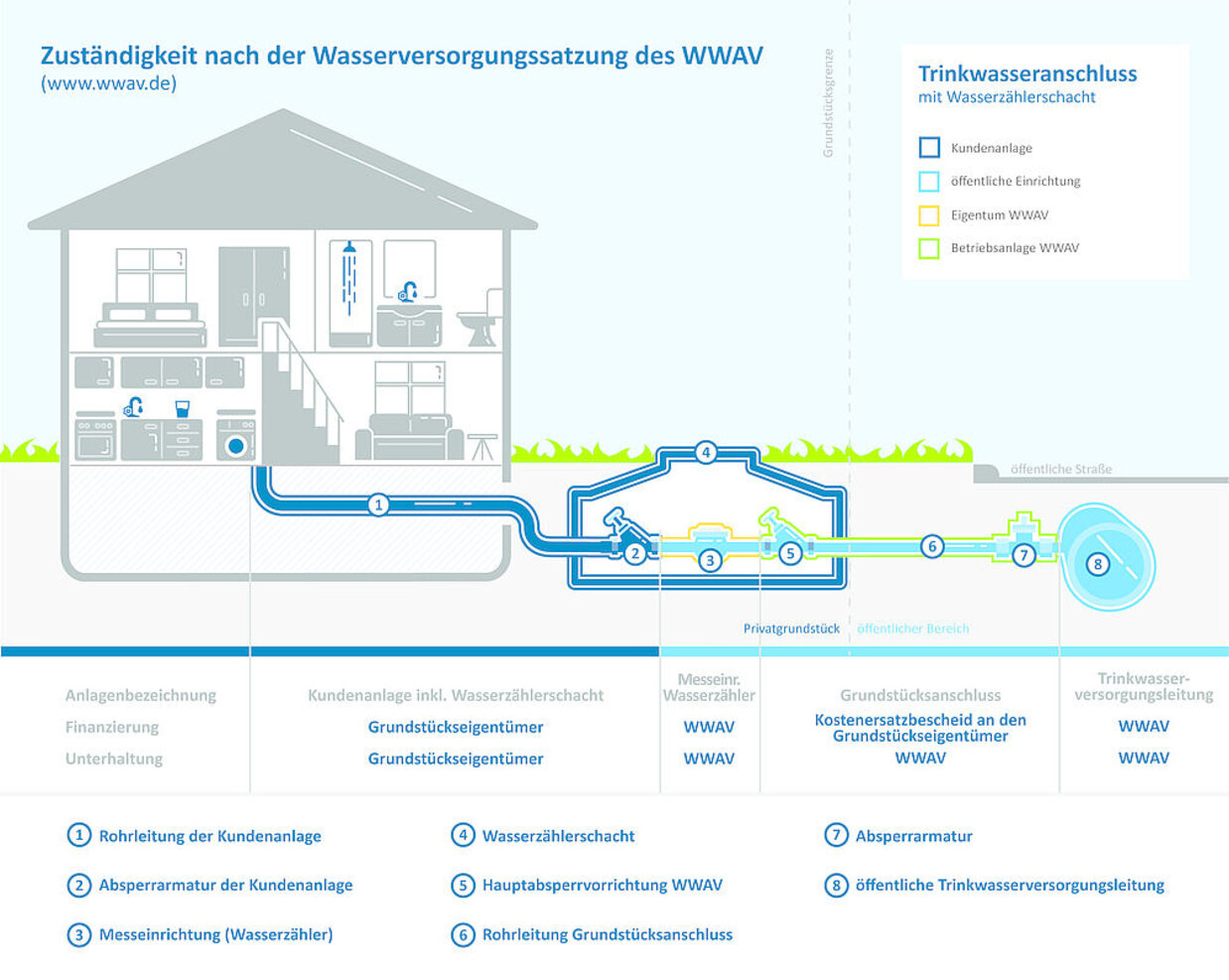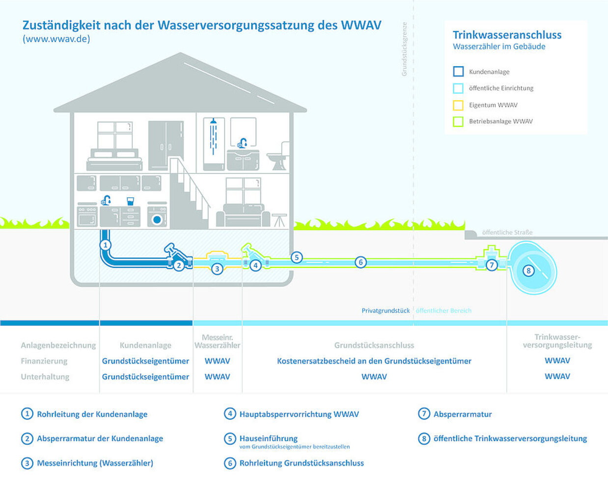 Für die Herstellung und Beseitigung von Grundstücksanschlüssen an das Trinkwasserversorgungsnetz sowie die Herstellung und Beseitigung zusätzlicher Grundstücksanschlüsse an das Schmutz- und Niederschlagswasserentsorgungsnetz ist an den WWAV ein Kostenersatz zu leisten. Die Abrechnung des Kostenersatzes erfolgt durch den WWAV in einem Kostenersatzbescheid. Die Höhe richtet sich nach den dem WWAV tatsächlich entstandenen Kosten. Sie können je nach Länge des Anschlusses und der spezifischen Gegebenheiten des Grundstücks variieren. Der Bescheid wird nach Fertigstellung der Arbeiten zugestellt.